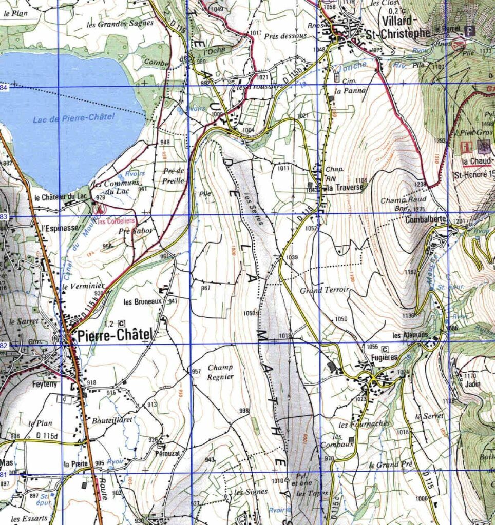 Position de la balise (voir carte ci-dessous en quadrillage UTM) UTM = 4982.50, 720.50 DD.DDDD = 44.9619, 05.7960 Position décodée = 44.9622, 05.7955 Commune de Pierre-Châtel, à 1043m d’altitude